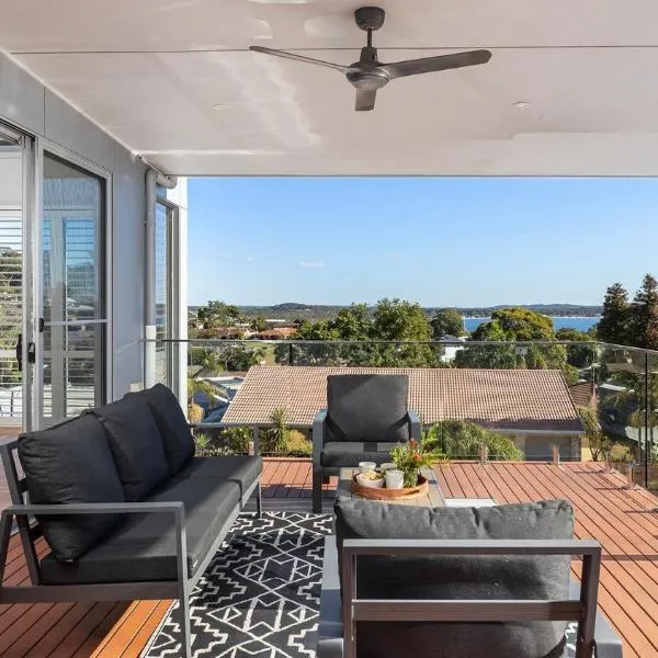 Located in Corlette and only 600 metres from Salamander Bay, Family Retreat with water views at Corlette provides accommodation with sea views, free WiFi and free private parking.
