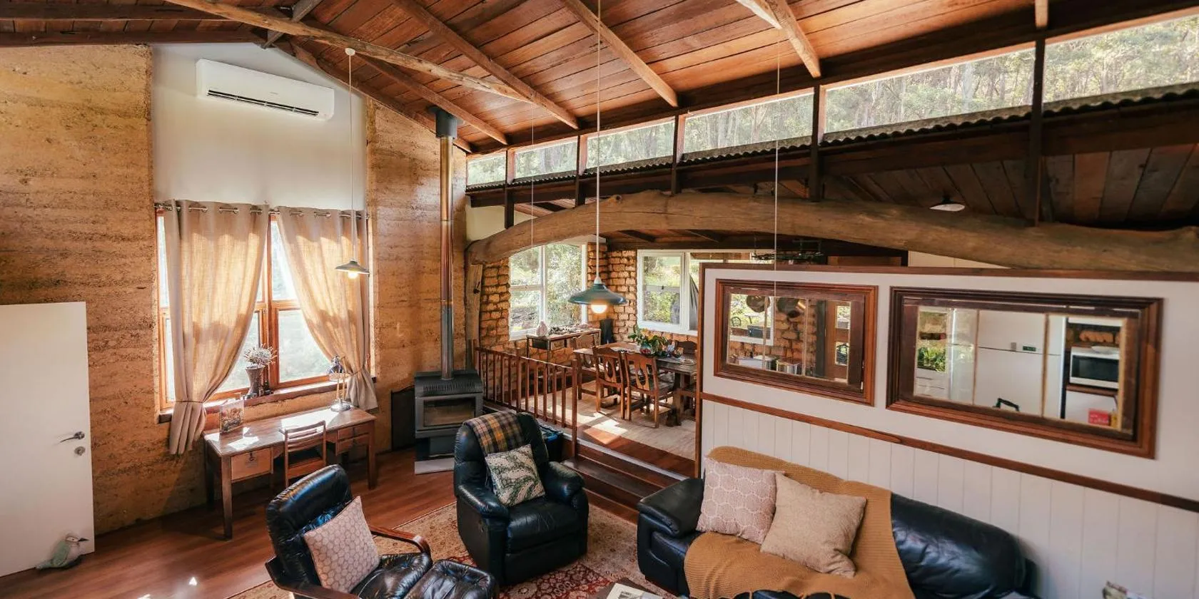 Sitting high between 2 tall karri trees and surrounded by giant granite boulders, 1 which rises up through the floor and in the living room, The Tree House is located in Weedon Hill, in the Denmark...