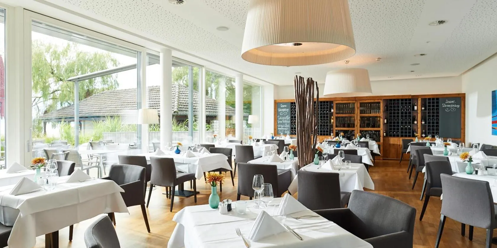 Offering panoramic views of Lake Constance, this 4-star hotel in Kressbronn has a large spa with pool, a private beach and varied cuisine. Internet access and parking are free.