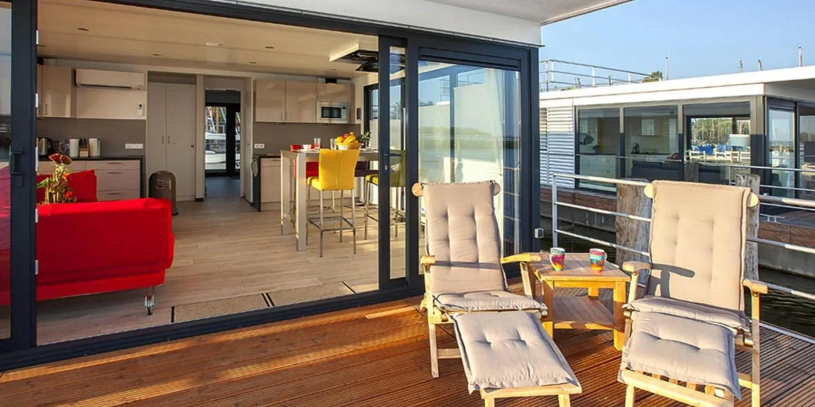 Hausboot Floating House Leni in Ribnitz-Damgarten, a property with water sports facilities, is located in Ribnitz-Damgarten, 28 km from Town Hall Rostock, 28 km from St.