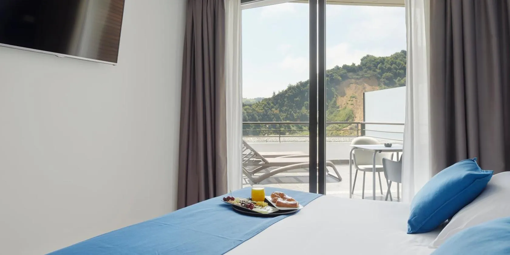 Hotel Berazadi Berri is located on a hillside above Zarautz, overlooking the beach. It offers rooms with sea views or mountain views.
