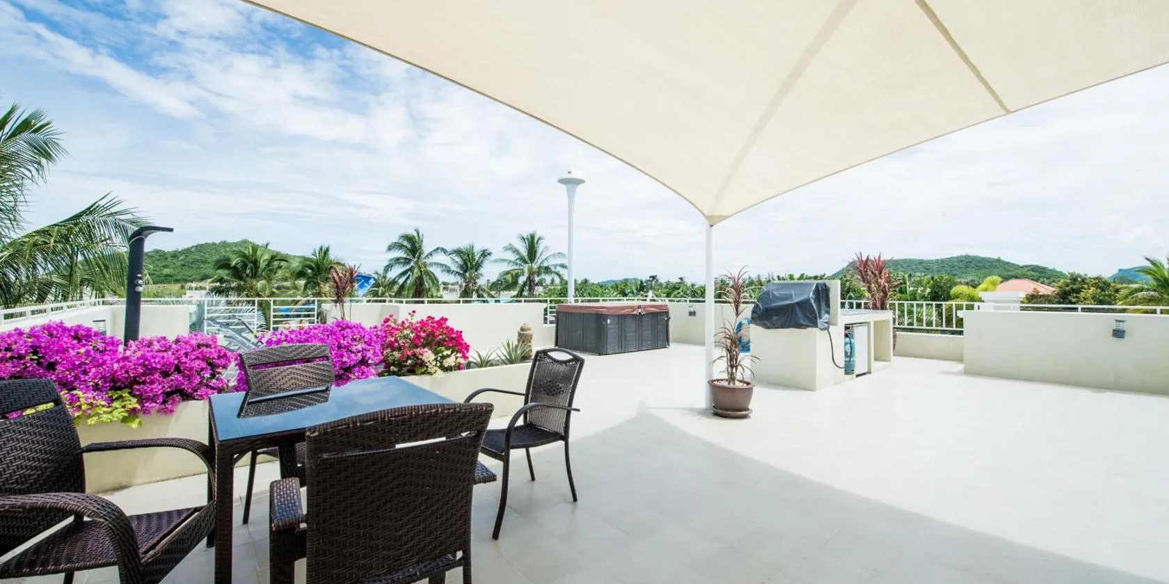 A 5-minute walk to Dolphin Bay Beach, Oriental Beach Pearl Resort offers spacious villas with a fully-equipped kitchen and a private spa pool on the roof terrace.