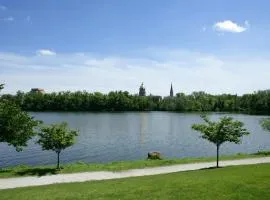 This cozy inn features an extensive gym, free WiFi and rooms with a flat-screen TV. It is located on the Saint Mary’s College campus, adjacent to the University of Notre Dame.