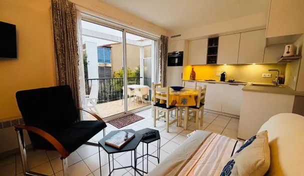 Located 50 metres from the beach, in front of the tourism centre in Saint-Cyprien Plage, this property features a communal interior garden, a panoramic lounge and a rooftop sun terrace.