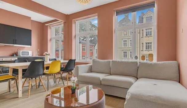 This property is 200 metres from the National Theatre and around the corner from Bergen’s lively main square, Torgallmenningen.