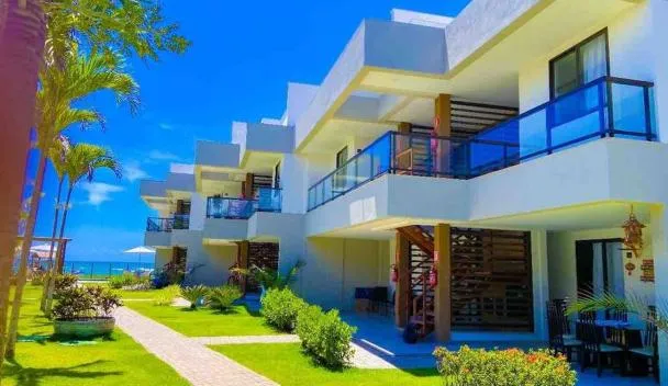 Situated in Monte Gordo, Village em Itacimirim - Beira Mar - 3/4 features accommodation with free WiFi, air conditioning, massage services and access to a garden with an outdoor pool.