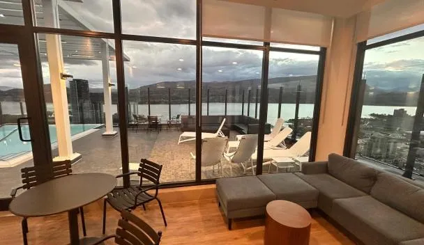 Το Luxury Lake View Condo in West Kelowna, 5 Star Resort with Pool, Hot Tub and Gym, που προσφέρει δωρεάν WiFi, κλιματισμό, κοινόχρηστο χώρο lounge και γήπεδο τένις, βρίσκεται σε West Kelowna.