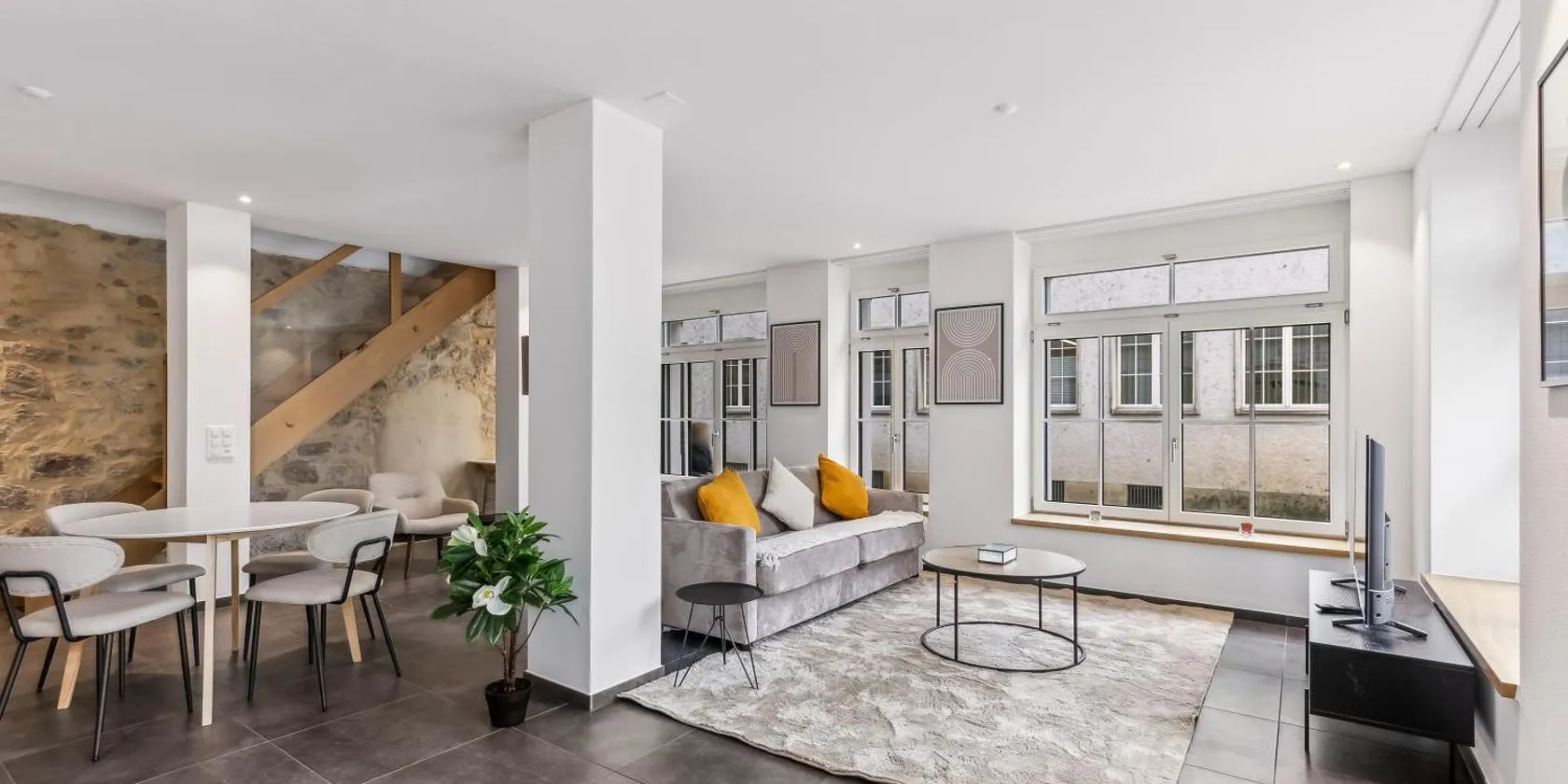 To MARYS family friendly Apartments, VISIT RHINE FALLS for FREE if you stay 2 nights, SOHO 95m2 2-Bedrooms 2nd floor & SOUTH BEACH 105m2 3-Bedrooms & LOFT 115m2 3-Bedrooms Suite with Galerie, LOFT...