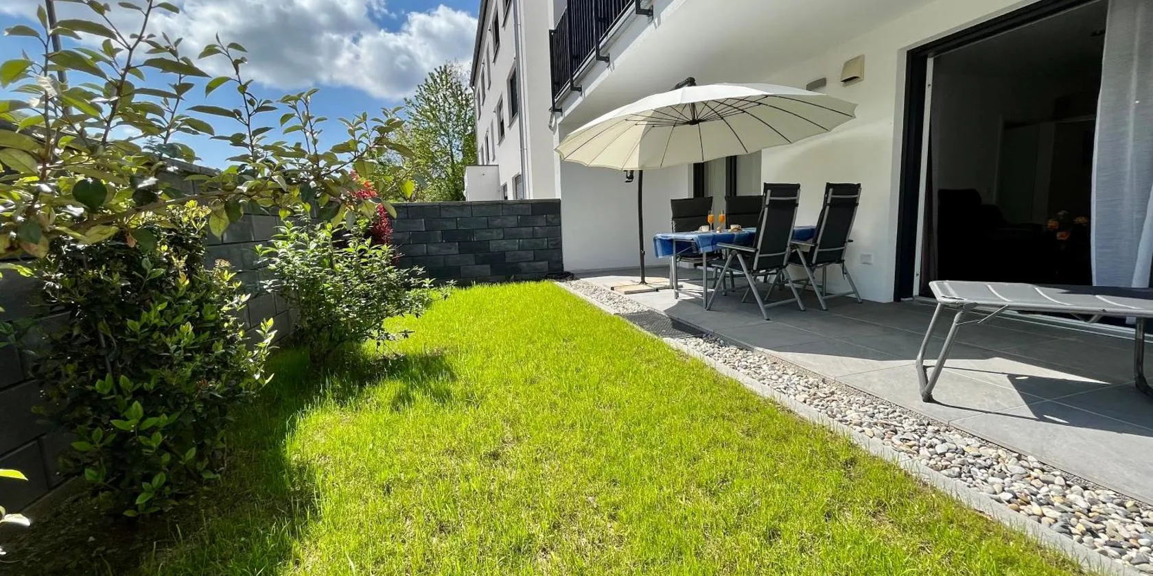 Το Three-castle-view in a new appartment, που προσφέρει δωρεάν WiFi, κλιματισμό, κήπο και βεράντα, βρίσκεται σε Neckarsteinach.