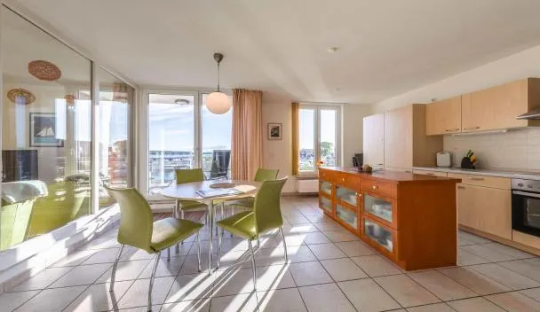 Το Garzini - Apartment mit Balkon & Müritzpanorama in der Hafenresidenz έχει θέα στη λίμνη και παρέχει μπαλκόνι και καφετιέρα.