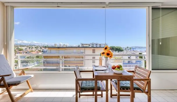 Το Port Azur Sea View - Happy Rentals παρέχει δωρεάν WiFi, κλιματισμό, εποχική εξωτερική πισίνα και βεράντα.