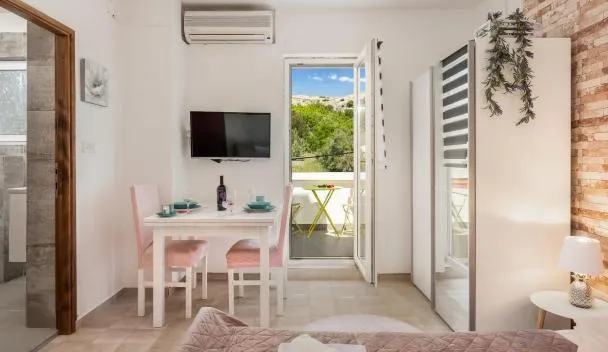 Το Apartments Perla βρίσκεται σε παραθαλάσσια τοποθεσία και προσφέρει κλιματιζόμενους εσωτερικούς χώρους με δωρεάν Wi-Fi. Βρίσκεται στο Dinjiška.