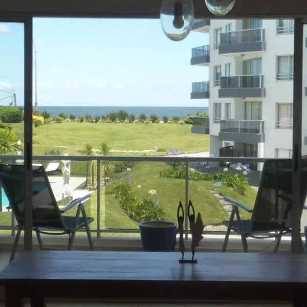 Το Apartamento en Punta del Este Playa Mansa βρίσκεται στην Πούντα ντελ Έστε και παρέχει δωρεάν WiFi και θέα στον κήπο. Έχει επίσης εποχική εξωτερική πισίνα, κοινόχρηστο χώρο lounge και βεράντα.