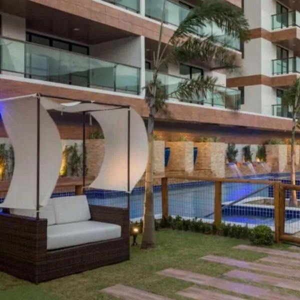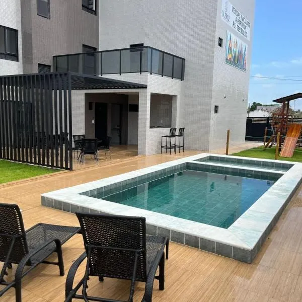 يوفر مكان إقامة "Apto completo em Cabedelo, proximo a João Pessoa com 2 quartos, cozinha completa e ar condicionado e varanda Gourmet" جهاز تكييف ومسبحاً خاصاً وإطلالة على المسبح، ويقع في كابيديلو.