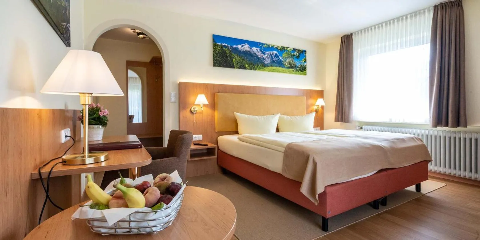 This traditional Bavarian hotel in Farchant is just 4 km north of Garmisch-Partenkirchen. It offers a daily buffet breakfast. The rooms have a balcony with views of the Bavarian Alps.