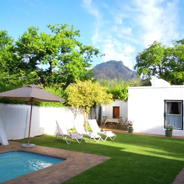 Το De Hoek βρίσκεται στο ιστορικό κέντρο του Stellenbosch και προσφέρει κλιματιζόμενα δωμάτια με κομψή, εξοχική διακόσμηση. Διαθέτει μεγάλο κήπο με βεράντες και αυλές.