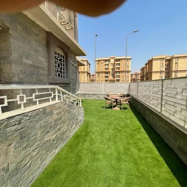 Το Unique apartment close to Cairo Airport with free airport dropoff 毗邻开罗机场的豪华公寓 提供免费机场交通服务 προσφέρει δωρεάν WiFi, κλιματισμό, κήπο και βεράντα.