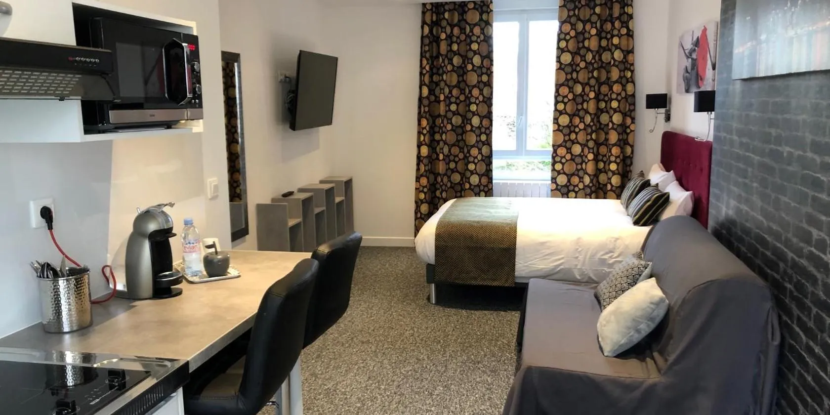 Το APPART'HOTEL61 Comme à la maison au Cœur de la Normandie προσφέρει βεράντα, μπαρ και δωρεάν WiFi.