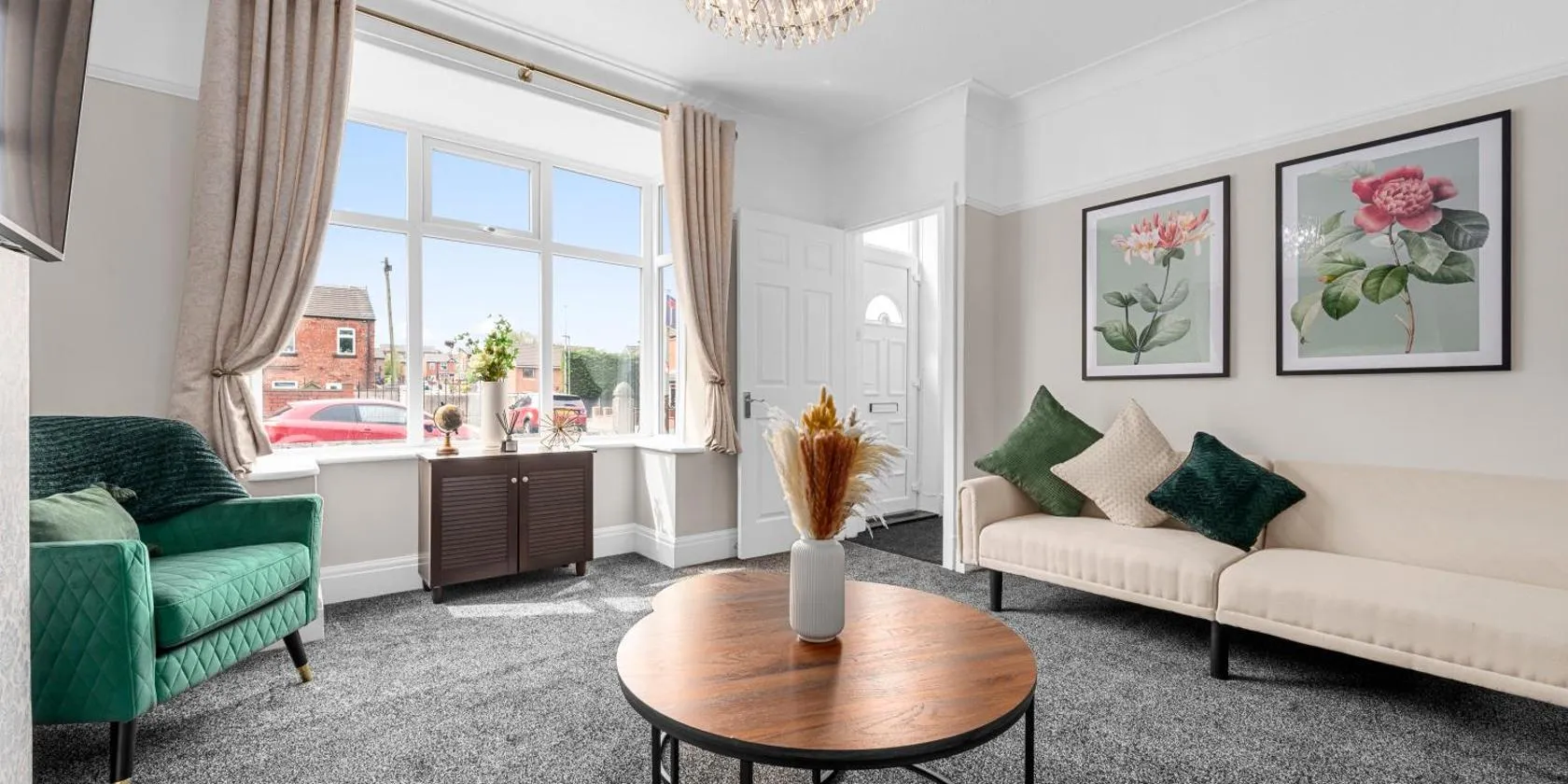 Το Beautiful Family Apartment Available Central Wigan I Free Parking I Sleeps 6 I έχει θέα στην πόλη και προσφέρει μπαλκόνι και καφετιέρα.