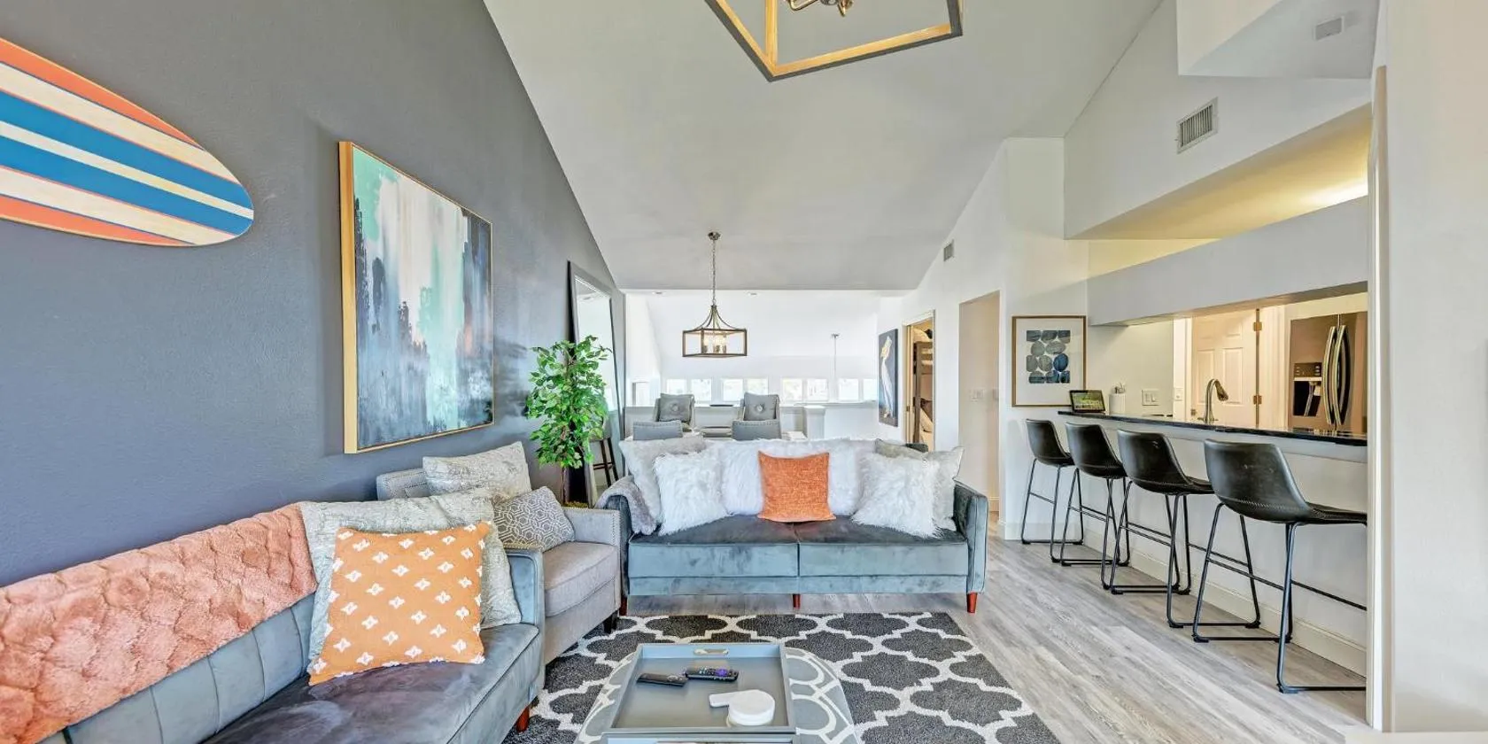 Το Heated Pool, Huge TV, Waterfront Tiki Bar & Grill, Close to Beaches προσφέρει καταλύματα με εστιατόριο, εξωτερική πισίνα, κοινόχρηστο χώρο lounge και μπαρ, ενώ το σημείο ενδιαφέροντος The John and...