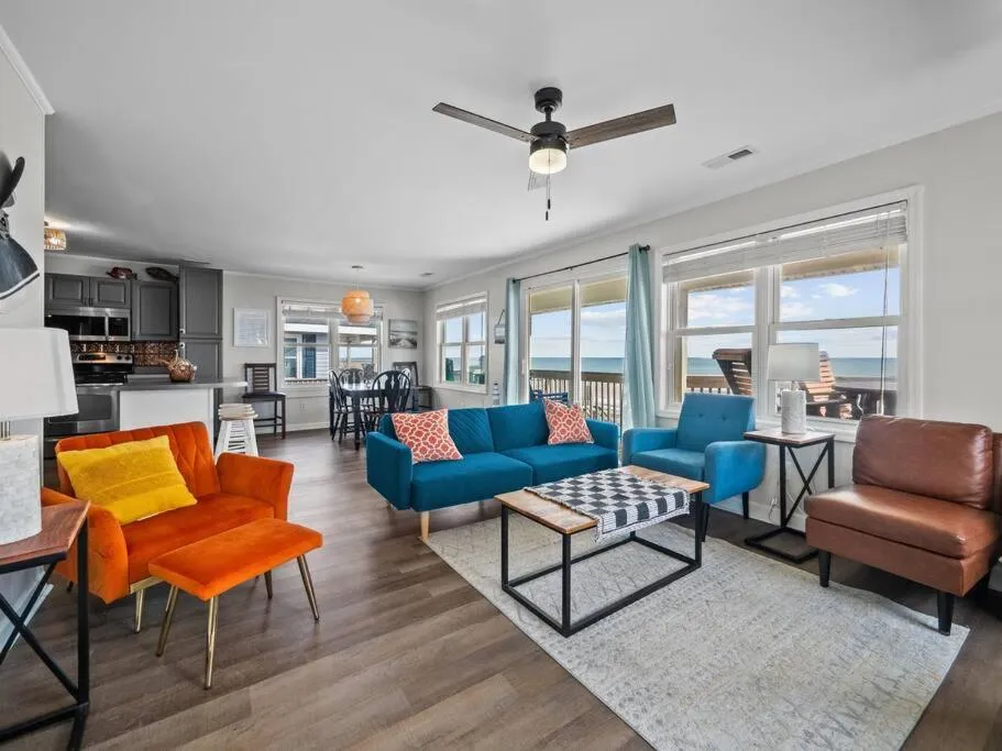 Το Steps To The Ocean! 285 έχει βεράντα και προσφέρει θέα στη θάλασσα. Είναι σε North Topsail Beach σε Βόρεια Καρολίνα.