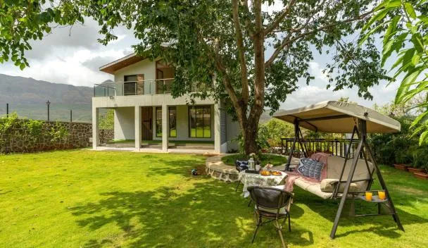 Το StayVista's Fairfield Villa - A green lawn and charming orchard await your retreat είναι ένα κατάλυμα με κήπο και κοινόχρηστο χώρο lounge.