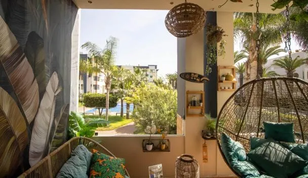 Το Miramare Cosy appartement pied dans l'eau avec piscine, που προσφέρει δωρεάν WiFi, κλιματισμό, εξωτερική πισίνα και βεράντα, βρίσκεται σε Mohammedia.