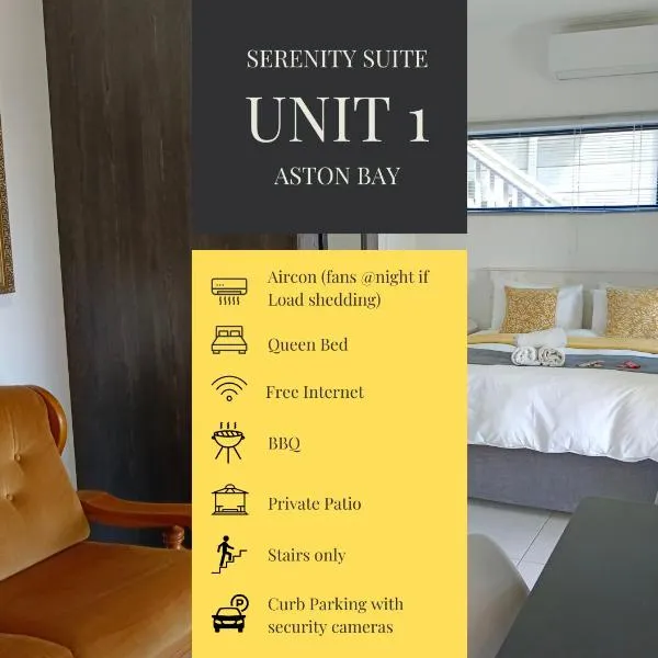 Το Surf & Serenity on Sea, by Jono & Erik είναι ένα παραθαλάσσιο κατάλυμα με κήπο, ιδιωτική παραλία, βεράντα και δωρεάν WiFi, το οποίο βρίσκεται στο Jeffreys Bay, μόλις 10μ από το σημείο ενδιαφέροντος...