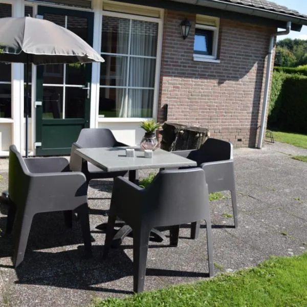Adorable two bedroom bungalow C7 next to hotel. Is gelegen in Garderen, op 15 km van Apenheul, en biedt accommodatie met een seizoensgebonden buitenzwembad, een tuin, een restaurant en gratis WiFi.