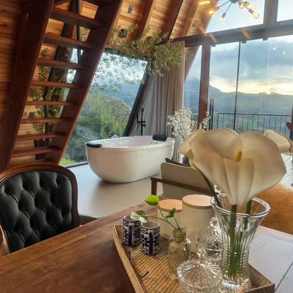 Το Chalés Santa Carolina διαθέτει εσωτερική πισίνα, υδρομασάζ, καθώς και κλιματιζόμενες μονάδες με δωρεάν WiFi σε Alfredo Wagner.