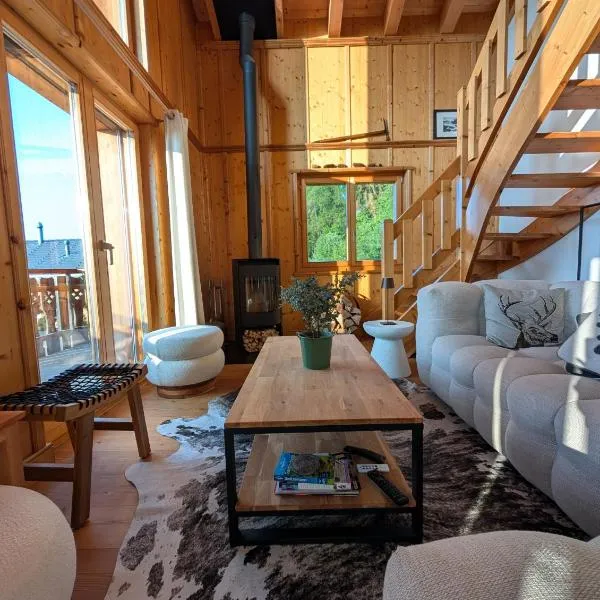 Το Kool Kabin - 8 pers - vue, charme et confort έχει θέα στο βουνό και προσφέρει βεράντα και μπαλκόνι. Το σημείο ενδιαφέροντος Crans-sur-Sierre είναι περίπου 33 χλμ μακριά.