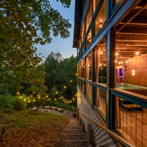Το Christmas & New Years - Cozy Mountain Cabin - Near Dollywood, Parkway, Biggest Zipline - Hot Tub, Games, Hammock είναι ένα κατάλυμα με κήπο και βεράντα.