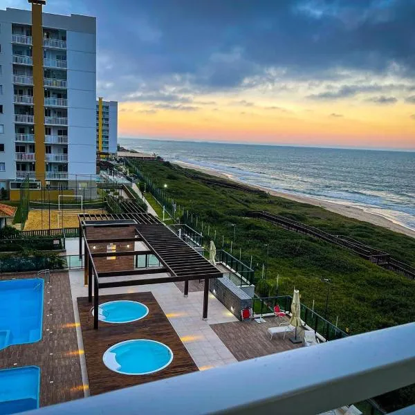 Apartamento aconchegante a poucos minutos do mar ligt in Barra Velha in de regio Santa Catarina, en heeft een balkon.