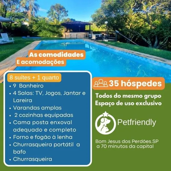 يقع مكان إقامة "Linda Casa de Campo - Próximo à SP - Wi-Fi grátis" في بوم جيسوس دوس بيردوس، ويوفر مسبحاً خارجياً وواي فاي مجاني وإطلالة على المسبح.