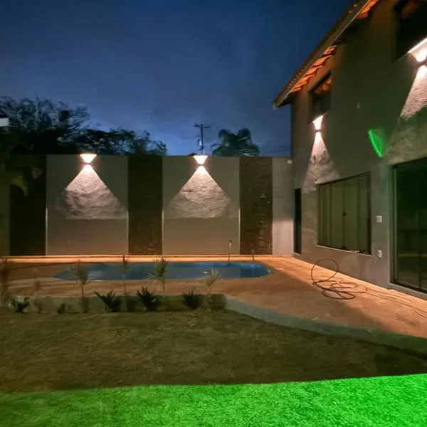 يقع مكان إقامة "CHACARA EM COND FECHADO WI FI AR CONDICIONADO PISCINA e SPA AQUECIDOS" في بوم جيسوس دوس بيردوس، ويوفر مسبحاً خارجياً وحديقة وتراس، بالإضافة إلى إطلالة على المدينة وواي فاي مجاني.