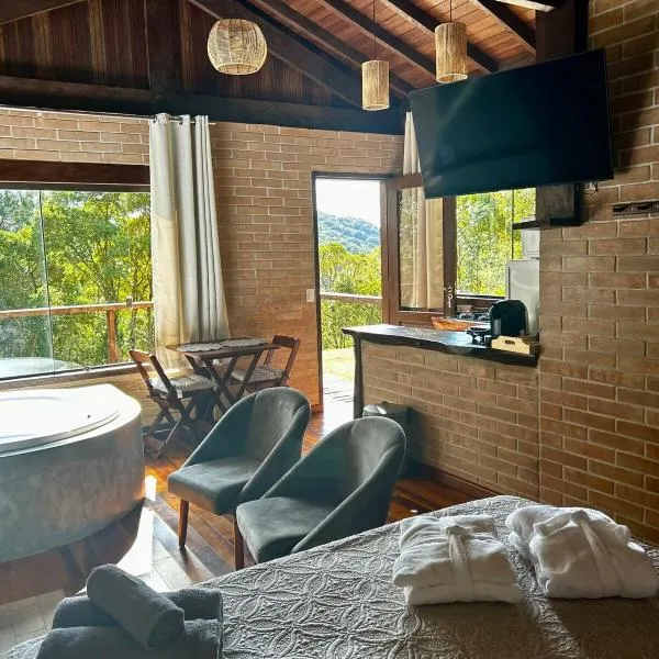 يوفر مكان إقامة "Chalé Jequitiba, hidro, lareira, natureza, Sul de Minas" إطلالة على البحيرة وفناء وماكينة قهوة، ويبعد مسافة 39 كم تقريباً عن استاد Municipal Stadium Verner Grimberg Monte Verde.