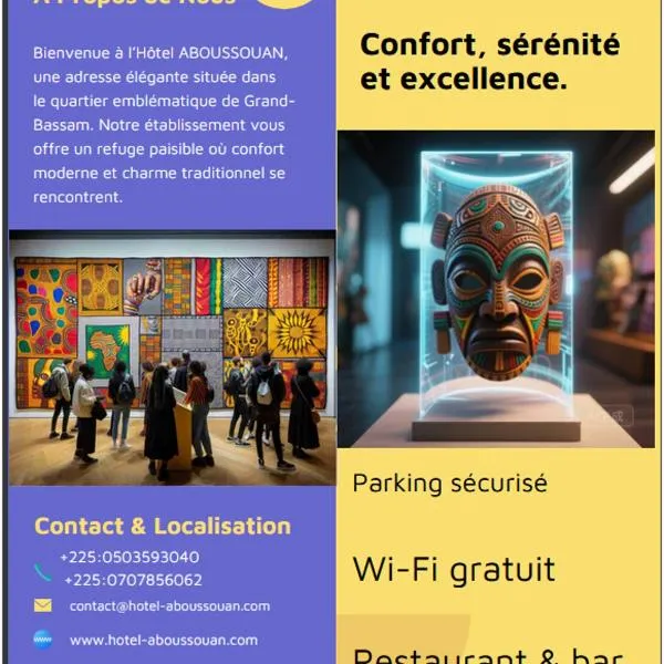Το Hotel Blawa, το οποίο είναι στο Αμπιτζάν και σε απόσταση 8,5 χλμ από Προεδρικό Μέγαρο, προσφέρει υπηρεσίες θυρωρείου, υποαλλεργικά δωμάτια, κοινόχρηστο χώρο lounge, δωρεάν WiFi και μπαρ.