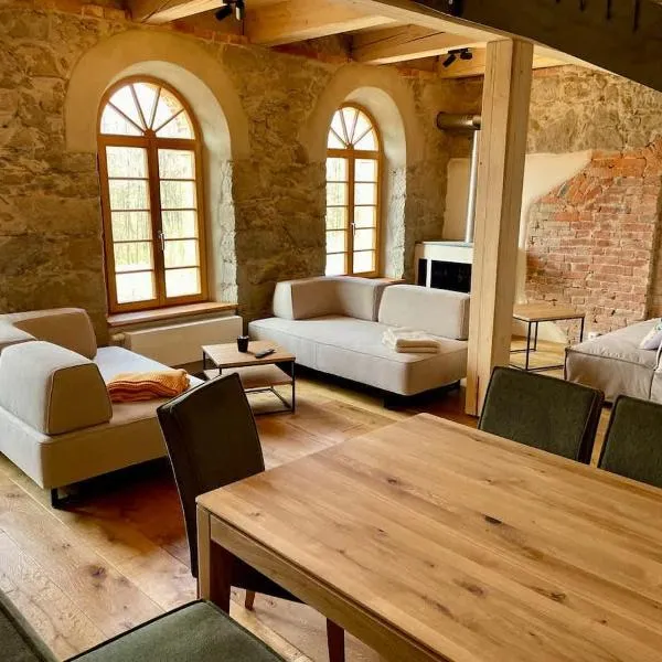 HexenburgbeiDresden mit Faßsauna 4 Raum Architektengaleriewohnung mit Whirlwanne, Kamin, Balkon-Nähe Sächsische Schweiz Dresden — это апартаменты в городе Großharthau, расположенные на расстоянии 22...