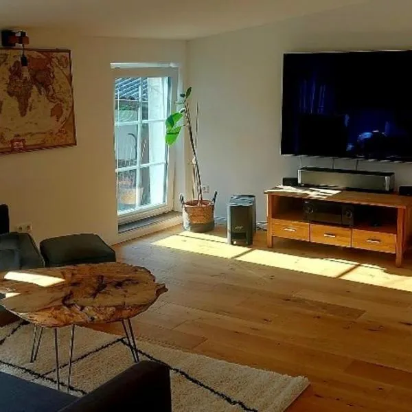 Stilvolle Wohnung im Zweifamilienhaus mit Feldrandlage und zentraler Lage — это апартаменты с патио в городе Роденбах региона Гессен.