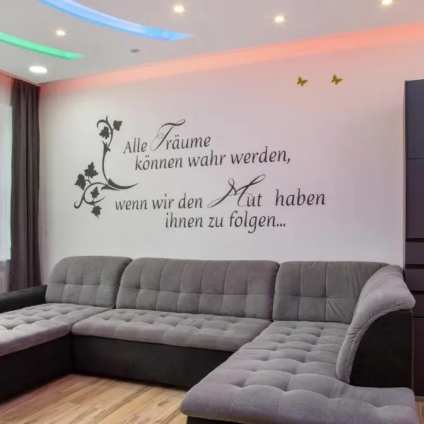 يوفر مكان إقامة "Schöne Wohnung mit Pool und Sauna zum Wohlfühlen" إطلالة على الحديقة وتراس وماكينة قهوة، ويبعد مسافة 31 كم تقريباً عن ساتورن أرينا.
