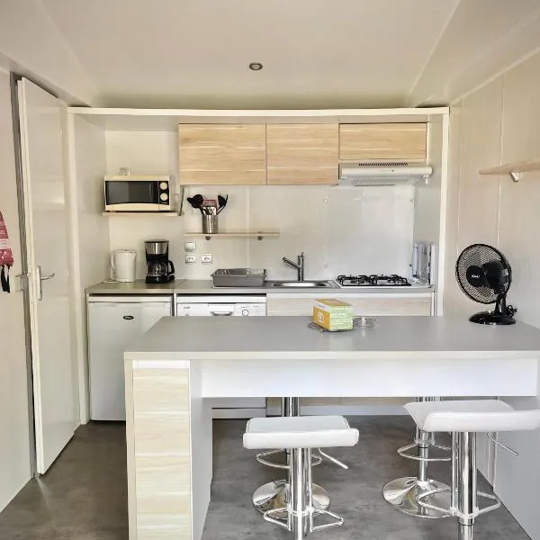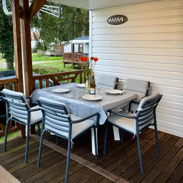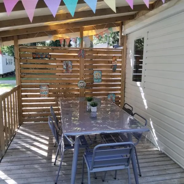 Το Mobil-home à 11km d'Europa Park via le bac είναι ένα κατάλυμα με εποχική εξωτερική πισίνα, βεράντα και μπαρ.