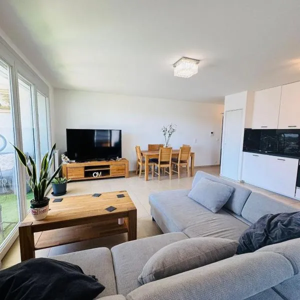 Cozy studio 2 steps from Geneva heeft uitzicht op de tuin, en biedt accommodatie met een terras en een koffiezetapparaat, op 10 km van Palexpo in Genève.