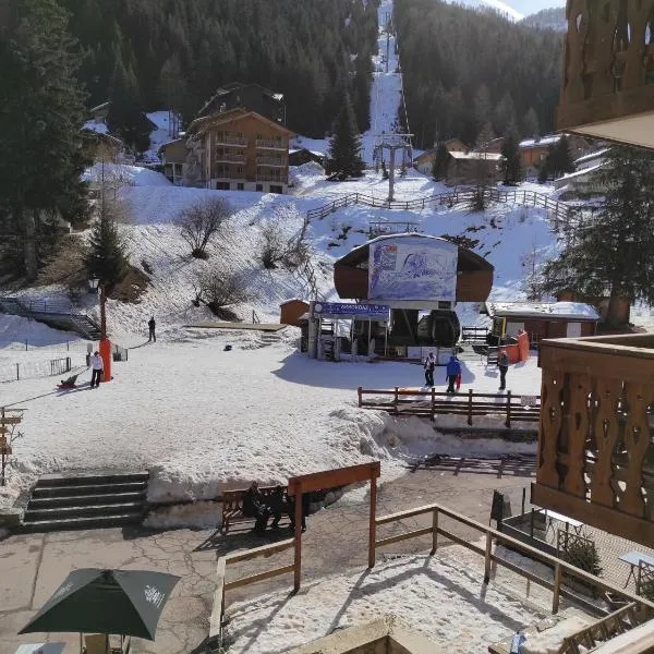 Appartement en chalet au pied des pistes ligt in La Norma, dicht bij La Norma, en biedt accommodatie met skispullen, een verkooppunt voor skipassen, een terras en skiën tot aan de deur.