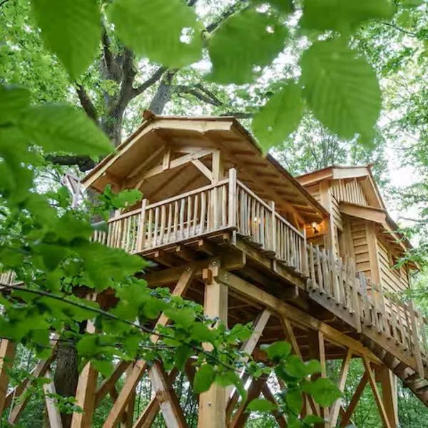 Charmante Cabane dans les arbres avec jacuzzi et sauna is een accommodatie 16 km in Boismorand, op 27 km van Château de Gien, en is voorzien van voorzieningen zoals een keuken en flatscreen-tv.