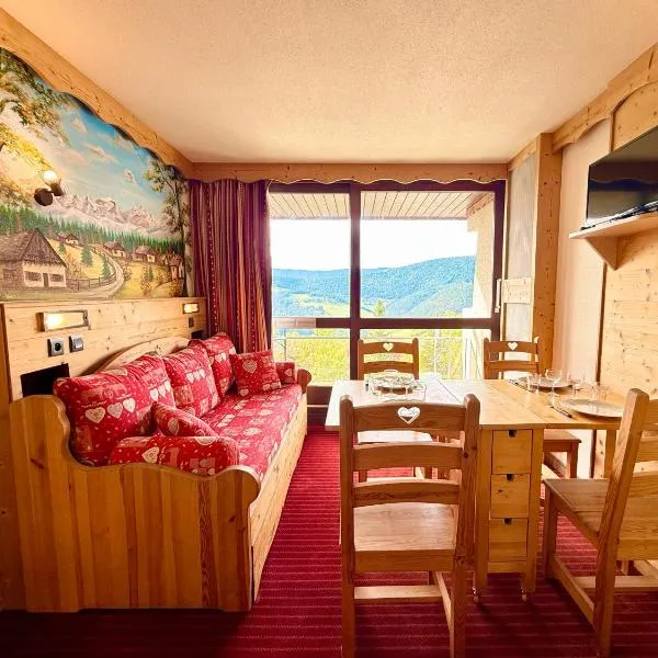STUDIO CHALEUREUX aux pieds des pistes de ski des Glovettes heeft uitzicht op de bergen, en biedt accommodatie met een patio en een koffiezetapparaat, op 39 km van WTC Grenoble.
