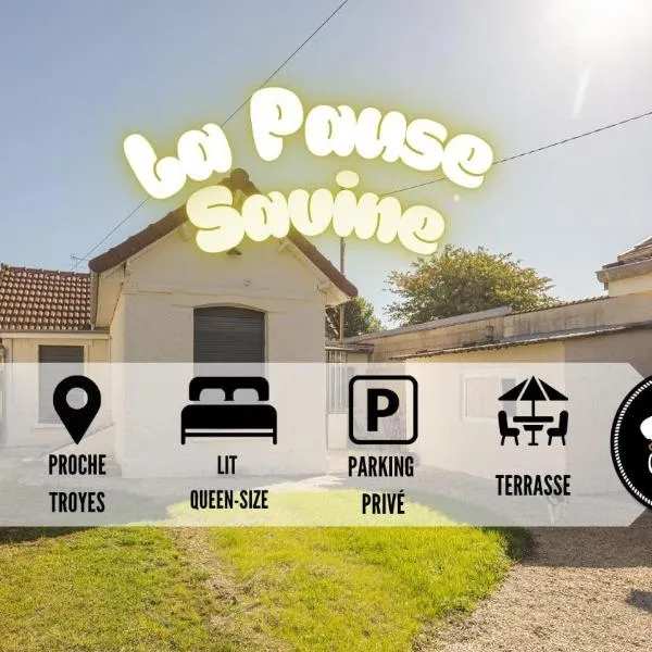 Το La Pause Savine - Proche Troyes - 4 pers βρίσκεται σε Sainte-Savine, σε απόσταση 3,3 χλμ από το σημείο ενδιαφέροντος Espace Argence. Παρέχει δωρεάν WiFi και σαλόνι με τηλεόραση επίπεδης οθόνης.