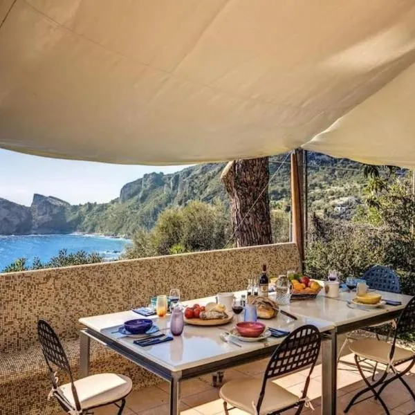 Το La Cabane Bleue προσφέρει δωρεάν WiFi, κλιματισμό και βεράντα σε Nerano.