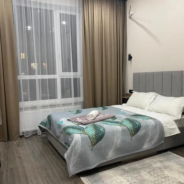 Το Уютные апартаменты в ЖК Женева είναι σε Astana. Αυτό το κατάλυμα έχει θέα στην πόλη και προσφέρει μπαλκόνι. Η κουζίνα έχει ψυγείο.