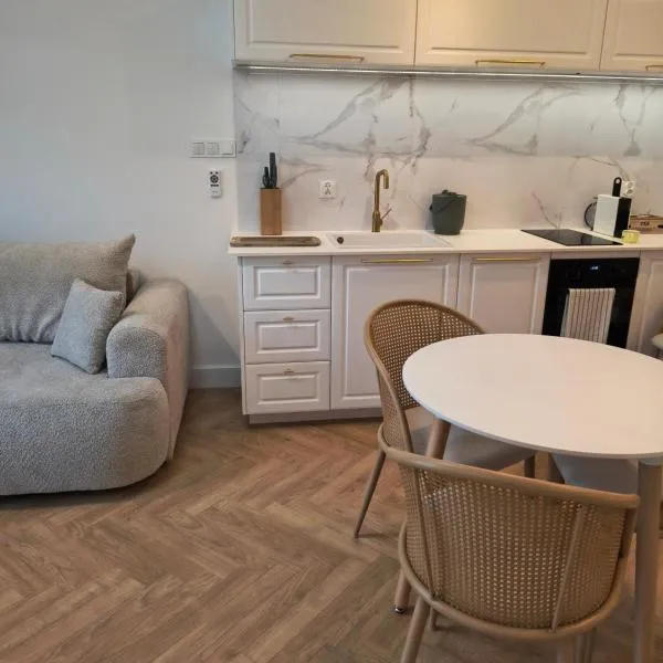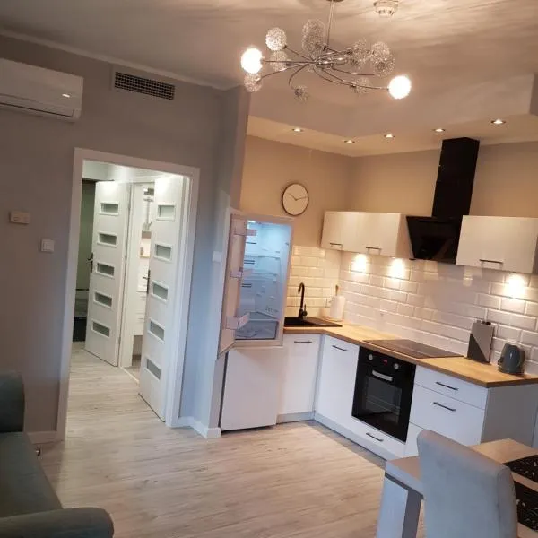 Apartament Kołobrzeg ligt in Kołobrzeg, op 18 minuten lopen van Centrale strand van Kolobrzeg, en is voorzien van een woonkamer met een flatscreen-tv.