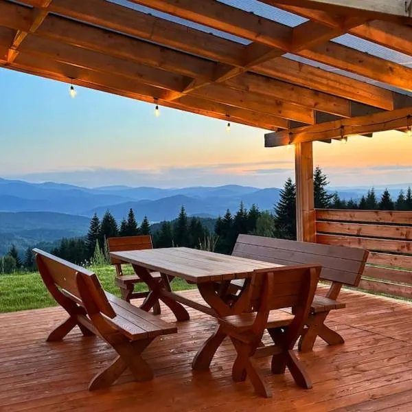 Beskid Barns - Domek z Balią i Widokiem na Babią Górę heeft een terras, en biedt accommodatie in Jordanów met gratis WiFi en uitzicht op de bergen.